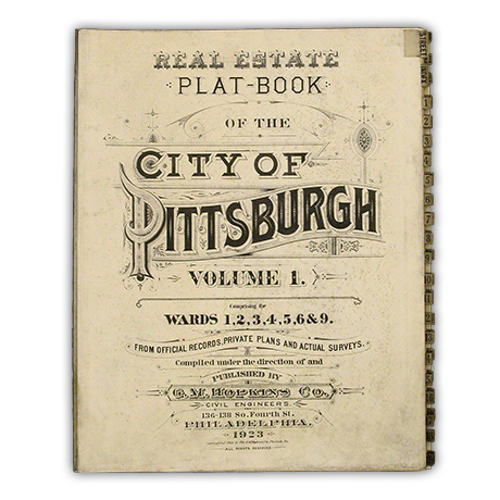 This plat book from 1923 had endured both liquid and insect damage before arriving in our lab. Covered in dirt, the book's binding was also failing and the linen tabs on the fore edge were falling off. Our conservators thoroughly cleaned this item and removed the water stain from the bottom of the book. The tabs were then repaired and a new binding was made for the book.