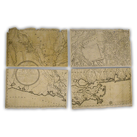 This large map of the Louisiana Purchase Territory was published in four sheets, and one of the four sheets was in a worse state when it came into our lab. The weakened and moldy section on the upper left needed cleaning and repair to make it match the other sheets more closely. The sheets were then attached in consultation with the client to create a single, full map.