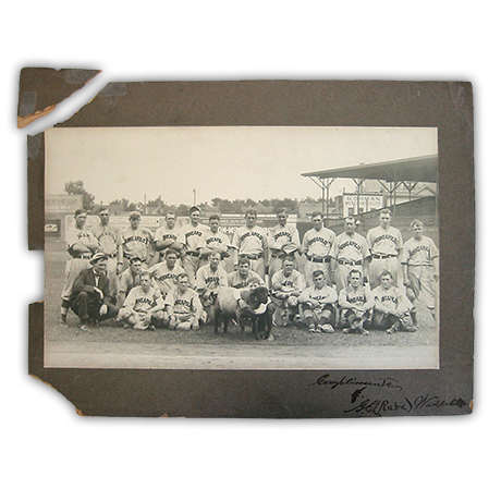 This photograph came into our lab on its original board, which was breaking off with age. To treat this piece, our conservators reattached the existing fragments of the original board. They then found an antique board that matched the original and used it to fill the remaining missing areas.